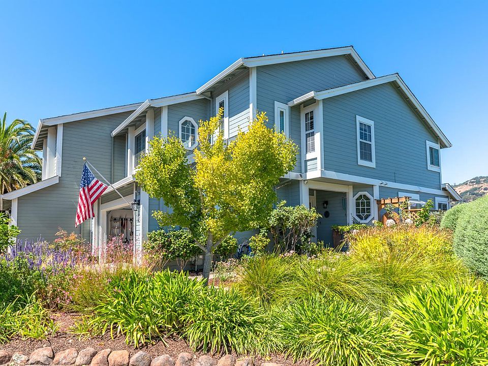 This beautifully renovated Bay side/view home offers lovely flow and finishes. Chef's kitchen includes Thermador appliances, wine fridge, and elegant Quartzite kitchen counters. The eat-in kitchen opens seamlessly to the private backyard garden oasis. The spacious dining and living rooms featuring a cozy gas fireplace and a wall of windows look onto the lush garden on drip system, and newer wraparound deck and fencing. Retreat to the master suite, where big bay views. The remodeled master bath has tile floors, a newer vanity with double sinks, a separate shower, and a luxurious soaking tub. Primary bedroom walk-in closet, and primary bath with large closet offers ample storage not often found in a Marin home. Second full bath recently remodeled. This home is filled with thoughtful extras and upgrades, including designer finishes throughout. Andersen windows, Canadian maple hardwood floors, expoxy garage floor, upgrades to sub and attic, ect. Spinnaker has one of the most affordable HOA's in the county, with pool, tennis courts and more. You really have to see this place to appreciate how special and serene it is. Schedule today.
