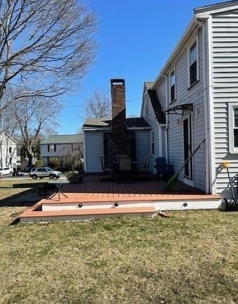 Welcome home to this custom built expanded cape set on a quiet street in much desired Ryal Side neigborhood of Beverly. Step into an open concept, living room, dining room and kitchen area filled with bright natural light. The living room boasts a vaulted ceiling and pellet stove tucked into the fireplace, providing extra warmth, coziness and saving on heating cost. Also on the main floor, you'll find a large master bedroom with connected laundry room and storage space. A den finishes off the main floor. Upstairs you will find three additional bedrooms and a full bath.There is new roof and furnace and many upgrades Huge yard on double lot surrounds portico composite deck.