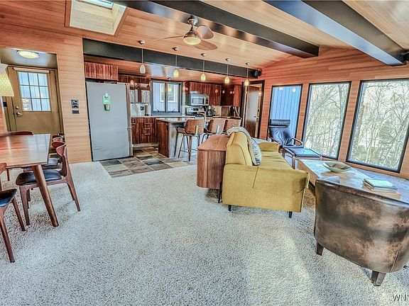 - Ceiling Fan(s), Cathedral Ceiling(s), Central Vacuum, Furnished, Granite Counters, Great Room, Kitchen Island, Kitchen/Family Room Combo, Living/Dining Room, Skylights, Bath in Primary Bedroom