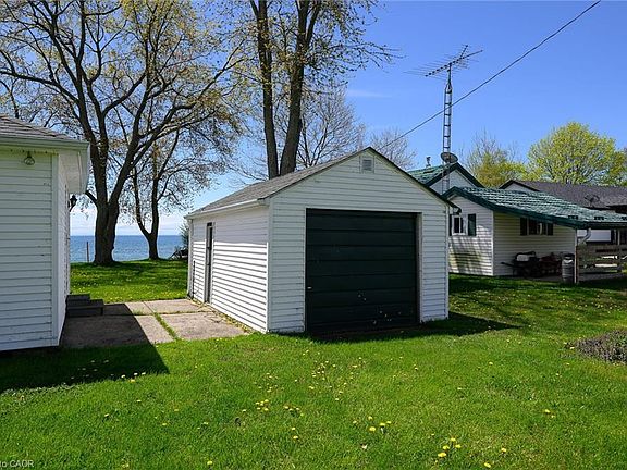 Captivating Lake Erie waterfront property fronting on sparkling Horseshoe Bay enjoying an endless golden sand lake bottom extending well into "The Bay" - imagine all the aquatic adventures waiting to happen - from your own back-yard. Offers 60ft of paved road frontage on quiet dead-end street - mins west of Port Maitland's unique bio-sphere (created by mouth of Grand River entering Lake Erie) - haven for numerous bird & water fowl species - 40/50 min commute to Hamilton/QEW - 10 mins west of Dunnville. Positioned proudly on huge 0.39 lot is clean/crisp white sided 3-seasons cottage reflecting pride of original ownership as evidenced by well cared-for condition of interior/exterior/grounds & matching 12x20 det. garage. Introduces 765sf of functional living space incs open conc. kitchen, dining room & living room continues to adjacent family/sun room addition sporting new lake facing patio door'21 completed w/3 roomy bedrooms & 2pc bath. Handy garage ftrs concrete floor, convenient front/rear roll-up garage doors & hydro - ideal for storage/lawn equipment. Manicured lawns extend southernly to steel lake front sea-wall reinforced w/poured concrete/rebar ensuring solid shoreline erosion protection supported w/large concrete blocks/armour stone situated behind initial wall. Extras - roof'17, economic septic w/new initial stage tank'12 (no costly holding tank pump-out fees), 100 amp hydro, block/pier foundation & lake-in take water. "Horseshoe Bay Memories" waiting to be made.