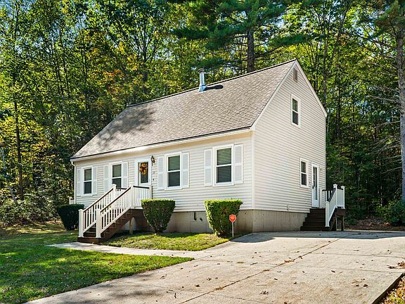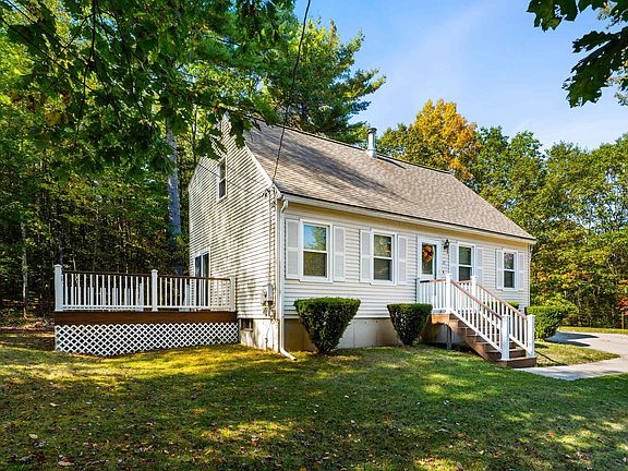 This beautiful cape home in Raymond awaits its new owners! Lovingly maintained by the same family for many years, this home is in move-in ready condition. Picture teaching your kids or grandkids to ride bikes on the quiet, private cul-de-sac. Imagine the first snowfall on the trees in your backyard and appreciating the beauty. Enjoy breakfasts and dinners on the back deck. These are a few ways this home will take care of your family. The neighborhood is one of Raymond's most desirable and the home sits back off of the road for even more privacy. The first floor has a bedroom and an additional room that could be used as an office with a beautiful, attached deck. The kitchen has been recently updated with new tile flooring. New carpeting runs throughout the home making it especially cozy in the winter months. Both bathrooms have been recently updated with flooring, tiled walls, and new vanities. All bedrooms have been recently treated with a fresh coat of paint. Upstairs are two additional large bedrooms with huge closets. The basement has generous room for storage. Here are the washer and dryer hookups as well. The home is generator ready and comes with a portable generator. There is plenty of space in the yard for family activities or simply enjoying the nature. You will fall in love with the serenity of this home and its surroundings. Make sure to see it soon!