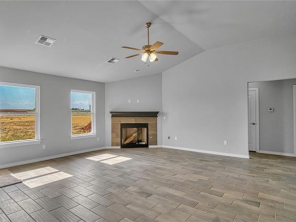 1 acre lot MOL in Veterans Acres. Just competed. Open floor plan. 4 bedrooms 2 bath home with a split bedroom plan. Fourth bedroom could be office or a 2nd living. Kitchen has solid surface counters, gas range, dishwasher, microwave/vent and high-rise faucet. Dining is next to the kitchen. Th master bath has walk in shower, a soaker tub and a built-in linen closet. Master bedroom has a large walk-in closet and a panned ceiling with a fan. The fireplace is gas. All bedrooms have ceiling fans. The hall bath has a tub/shower combination. There is a utility room with cabinets. Covered patio. Double car garage with an electric opener. The HOA is $150 a year for road maintenance only.