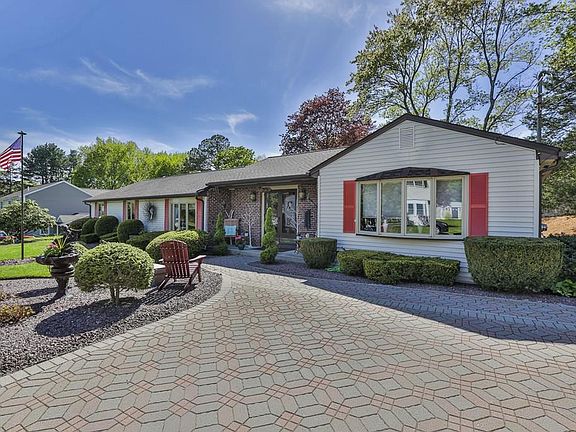 Impeccably maintained for nearly 40 years, this home displays pride of ownership throughout! Stately brick-front entrance w/double doors welcomes you to this custom ranch. Step inside to the great room with natural gas FP, cathedral ceilings, exposed beams & granite tiled entryway. Fully applianced kitchen w/Corian counter & tiled backsplash adjoins formal dining room w/cathedral ceiling & recessed lighting. Front to back MBR with gas FP, plus two additional bedrooms, two full baths and a home office. Central AC, security system and wired for surround sound throughout. Lower level offers an additional family room with half bath, laundry and a 3rd gas FP, plus unfinished area for additional storage. Fully irrigated, manicured grounds w/lighted brick pillars, custom paver driveway & walkway. In the backyard you'll find a covered screen porch, small patio, a storage shed. Wired for portable generator. Easy access to Rte 3, 495 and 128 - shopping & schools. Truly an entertainer's delight!