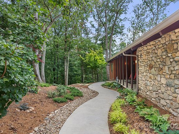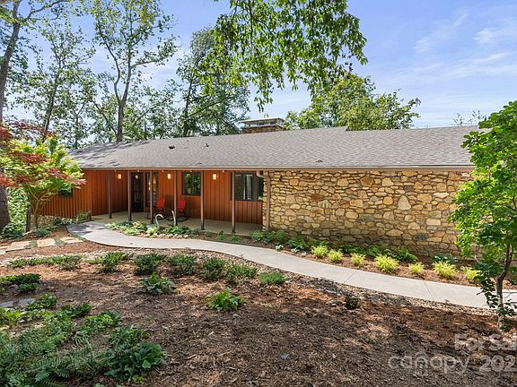 A rare mid-century modern gem, this four-bedroom, two-bath 1966 home was designed by noted Asheville architect Bert King, blending timeless design with modern luxury. Located in the desirable Kimberly Woods neighborhood, just minutes from downtown and Beaver Lake, the home has been extensively renovated with over $900k in thoughtful updates. The split-level floor plan features a stunning new kitchen with Thermador appliances and dining area, a step-down living room opening to an expanded deck with black locust wood, and walls of sliders showcasing the landscaped acre. The dramatic central stone chimney featuring 2 fireplaces have been fully restored, while original details such as custom metal stairwell, built-ins, and striking tilework preserve its mid-century soul. Perfect for entertaining, the home’s open flow connects indoor and outdoor living, with terraced hardscaping and a private cul-de-sac setting. Hidden from the street yet moments from city life, this rare Bert King design offers both architectural significance and everyday livability.