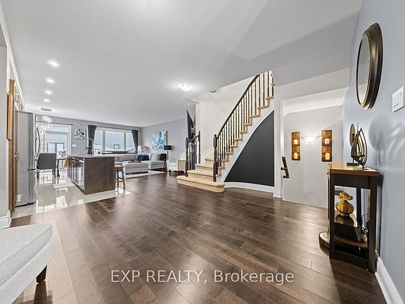 Foyer and powder roomOpen concept main floorBright and airyTons of natural lightModern kitchenLoads of cabinetsIsland with seating
