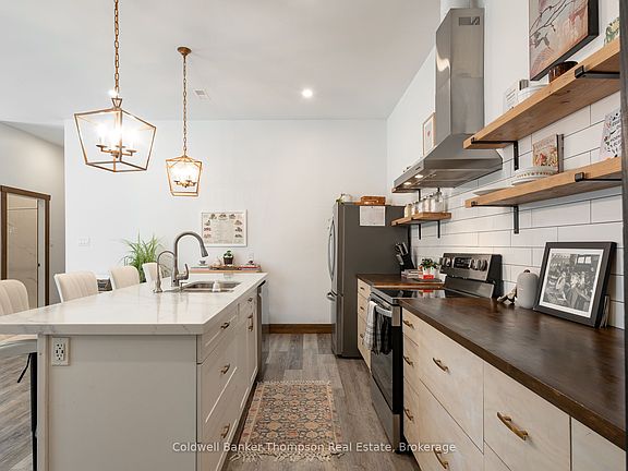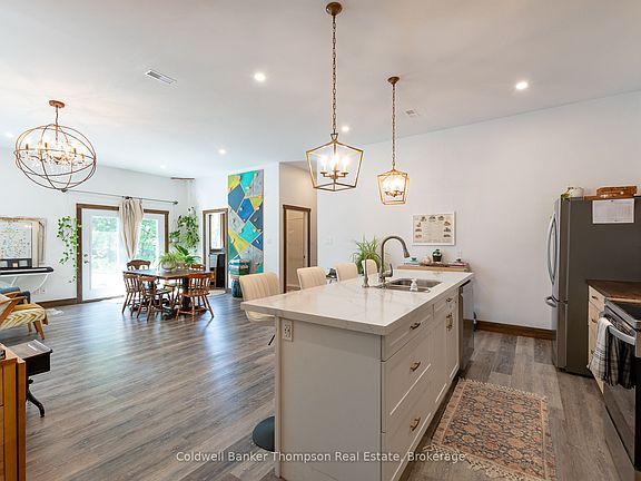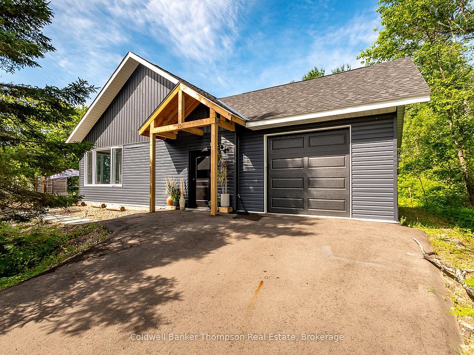 Welcome to this stunning 2021-built bungalow, a true gem offering 3 bedrooms and 2 bathrooms. Designed for modern living, its open concept layout seamlessly connects the living, dining & kitchen areas, perfect for gatherings or easy everyday flow. This home was built with efficiency in mind, featuring a slab-on-grade foundation with in-floor heating, smart use of natural light, and thoughtful construction that helps keep utility costs low year-round. Garden enthusiasts will love stepping through the garden doors to a picturesque patio with pre-established veggie beds ready for planting. An attached 1-car garage with inside entry adds convenience on chilly days, while a hidden bonus awaits behind the living room bookshelves, a secret kids' hideout with a play zone, climbing wall & loft hangout. Soaring 10-ft ceilings elevate the sense of space, and the inviting primary suite includes a beautiful ensuite & walk-in closet. One of the guest bedrooms features a built-in loft-style bed to maximize floor space. The chef's kitchen shines with butcher block counters, an oversized island capped with quartz & impressive storage, including a generous walk-in pantry. Less than 1 km from Tom Thompson Park on scenic Forest Lake and just minutes to South River's charming downtown, this home delivers modern comfort, energy-efficient living & everyday convenience in an exceptional package.