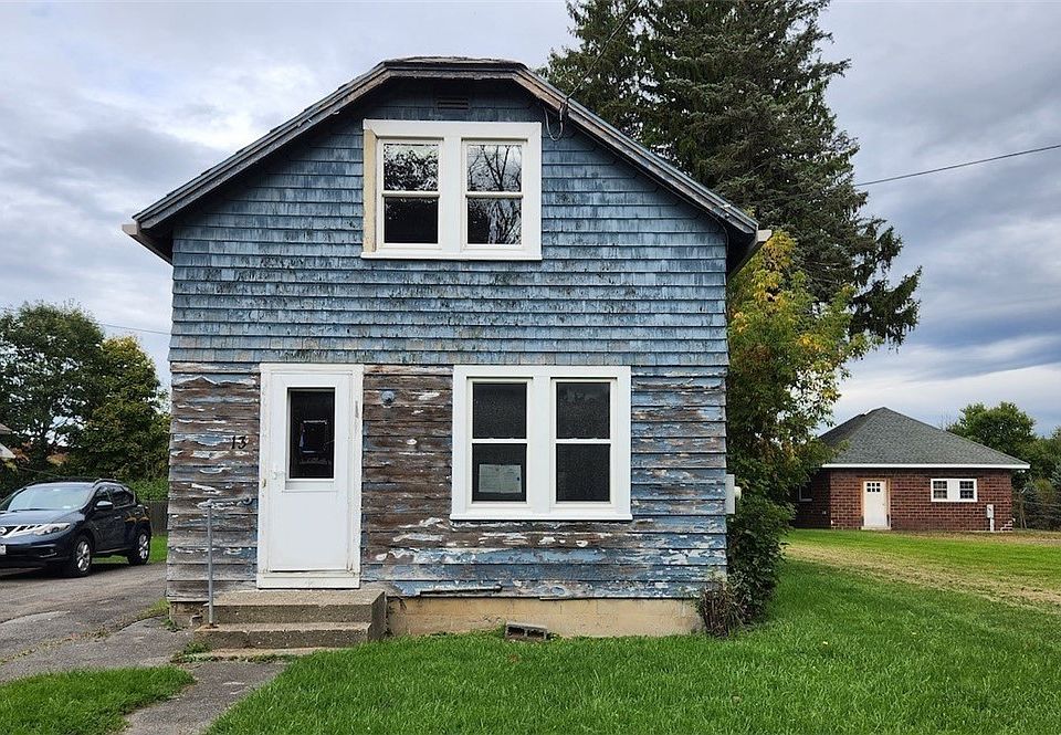 HUD Home. Abstract and survey are the responsibility of the purchaser. Disclosures Attached. Located just off of the main street, this home is close to the highway, schools, shops and dining that Tully has to offer! This two story two bedroom home has a plenty of storage in the basement and a good sized backyard with a partially covered deck.