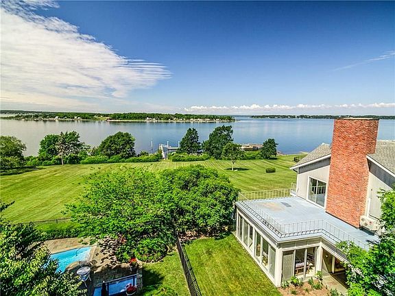 Wow - fabulous new price!!! Enjoy breathtaking westerly views of Narragansett Bay from Poppasquash Point to the Newport Bridge and beyond. This spectacular property features a gracious mid-century house designed by renowned New York architect Eldredge Snyder, with seven bedrooms and five and a half baths. Designed for year round entertaining, the house offers a versatile floor plan spacious enough to accommodation everyone. Step outside to the stunning in-ground pool overlooking the Bay and the rolling lawn down to a deep water dock with new float and 400' feet of prime waterfront. Hop in your boat and head to Newport, Providence or Bristol for lunch or dinner. Watch the limitless boating activity on Narragansett Bay, with countless sailboat regattas and gorgeous sunsets! This five and a half acre private enclave has endless possibilities including subdivision potential.