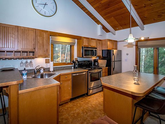 Lovely chalet in the Mittenwald section of Linderhof. Neat and clean, this 2 bedroom chalet offers an open living design with a wood burning fireplace, an updated kitchen, two comfortable and bright bedrooms and full bath. New septic system, paved drive and a spacious deck. Nearby Story Land, wonderful Alpine skiing, cross country skiing, hiking, great shopping and restaurants. Bartlett is 64% National Forest and home to Attitash and the Saco River. Come join us.