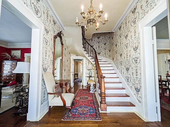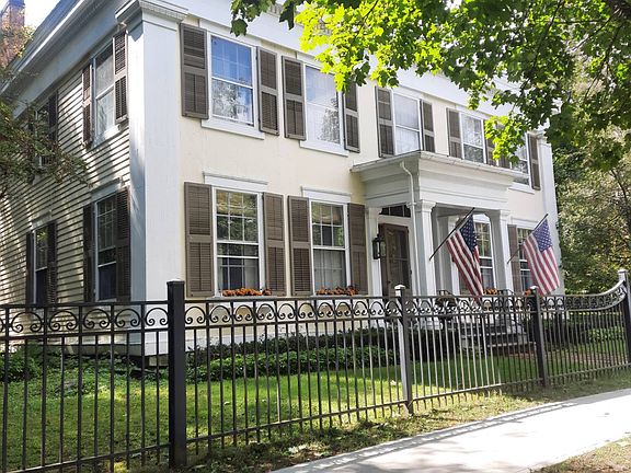 Beyond the wrought iron fence, stands one of Cooperstown's finest village homes, known as the Worthington House, built in 1802 with 5,200 square feet of living space. Built by Ralph Worthington, this house is an excellent example of the early Federal style in the village. It was enlarged by the builder's son, John Richard Worthington, in 1845 and named it the White House. Enter into a grand front foyer with a lovely curved sweeping stair case with wide pine treads, high ceiling and long hallway. Stunning formal dining room boasts plaster moldings, interesting ornamental ceiling art, indoor shutters, pine flooring, 6/6 windows and a fireplace with marble mantel. Over 12' high ceiling in this 24'x18" room. Federal moldings, marble fireplace, indoor shutters, 10' high ceiling and pine floor showcase the formal living room. The cozy den/library with the original built-ins surrounding the fireplace. There is a marble top center island with sink, dishwasher and extra storage in the eat-in kitchen, with double ovens, 6 burner/plus grill cook top, refrigerator, plenty of cabinets, walk-in pantry, computer area and, indeed another fireplace. Powder room, laundry room and fantastic mudroom with shelving, built-in benches and space for all sporting equipment. A butler's pantry is located between the living room and kitchen, off a side entry. Upstairs there are five bedrooms, office/den and three full baths and may be accessed from both front and back staircases. The master has two walk-in closets. The walk-up attic has interesting post & beam construction and there is plenty of space for storage. Above the three-bay detached garage is a two-bedroom, one full bath apartment with private entrance and history of rentals. Located one block from Otsego Lake, adjacent to Cooper Park, two blocks from the Bassett Campus and walking distance to the Clarks Sport Center and both Cooperstown School campuses, this home is truly in a wonderful location!