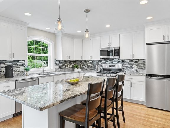 Welcome to this Impeccably maintained 6-year young townhome conveniently located near downtown Wakefield, featuring great amenities throughout! The main level boasts an open-concept kitchen equipped with SS appliances, stunning granite countertops with matching backsplash and an island with room for seating. Adjacent is the eat-in dining area that leads to a slider and a private deck, with stairs to the fully fenced shared yard. Additionally, the main floor has a formal dining/family room dressed in wainscoting, a half-bath, and a sunlit living room featuring a gas fireplace. Upstairs, you'll find 2 spacious beds, a shared full bath, centrally located laundry, and the sizeable primary suite. The primary suite includes a private sitting room/office with French doors, another gas fireplace, and a walk-in closet. The bath boasts a double vanity, quartz countertops, and a glass-enclosed double door shower. The property also offers a 2-car tandem garage underneath with an EV charger.
