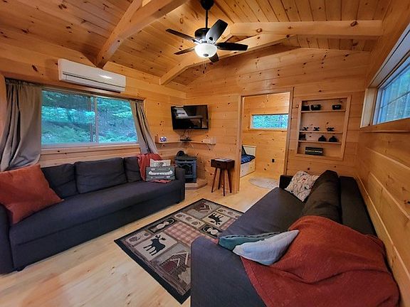 Very well maintained tiny home from Adirondack White Pine Cabins located across from the entrance to the public beach on Lake Colby. Perfect location just outside the village limits to enjoy all Saranac Lake has to offer. Public boat launch to Lake Colby is just a few blocks away, public beach is right across the street. Some of the best year round fishing, sunsets, all winter sports, including downhill skiing at Mt. Pisgah plus biking, hiking , and plenty of restaurants and pubs for the foodies.