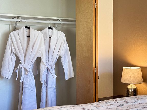 Fresh linens, towels, and bathrobes Set of