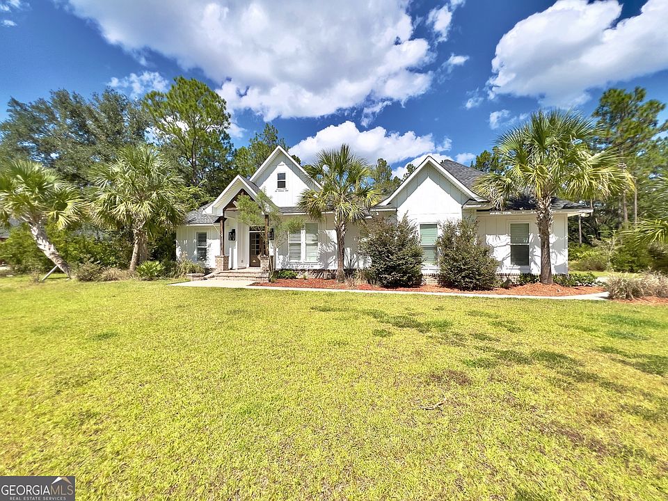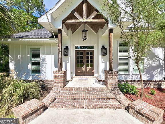 Welcome to this beautiful 3-bedroom, 2-bath home on 0.90 acres with no HOA. Features include double French entry doors, a brick gas fireplace, hurricane-safe windows, and a large covered patio. The kitchen offers light granite countertops with a 10-year warranty, stainless steel appliances, double oven, farm sink, and integrated pantry. The owner's suite boasts dual vanities, soaking tub, walk-in shower, and a custom walk-in closet. An aroma 360 machine is connected to the HVAC that scents the home and can be refilled monthly! Additional highlights include upgraded laundry cabinetry with folding station and a tankless water heater.