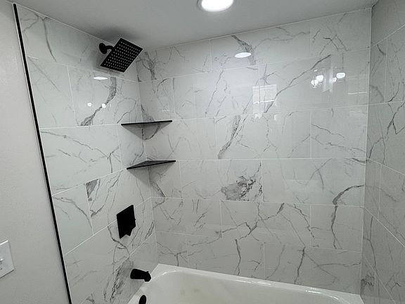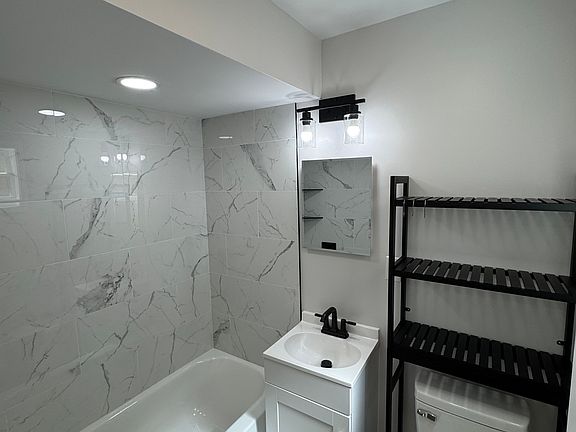 The bedroom includes a built-in closet organizer and in-unit laundry for ultimate convenience. The sleek bathroom boasts contemporary fixtures, a tiled shower, and a luxurious soaker tubperfect for unwinding after a long day.