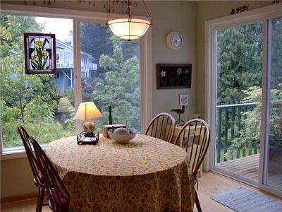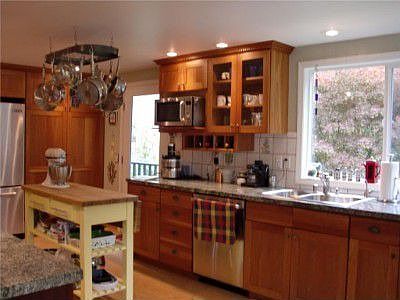 Sunny and quiet home. Beautiful park-like setting with Lake Trail Park on 2 sides. Remodeled w/new gourmet kitchen, bathroom, hardwood floors throughout, new windows and much more. 5 BR, 3 BA, vaulted ceilings, den/office, extra large family room w/exercise area, wine cellar/storage space, 2 free standing stoves, large deck overlooking park and large parking area on both sides. 2 sheds for storage and a large double carport that can easily be converted to a garage. A great home for the family!