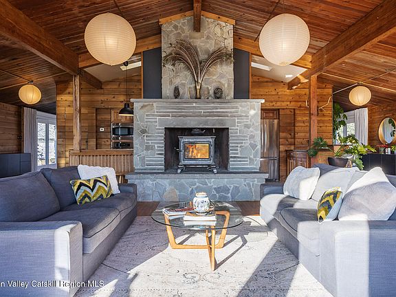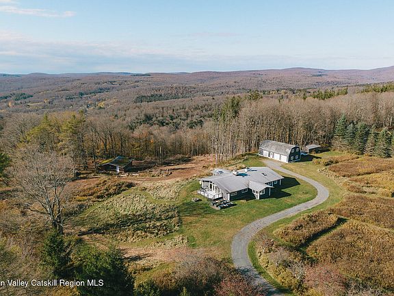 Set on a ridge just outside of Catskill Park, The Lodge offers single-floor living surrounded by sweeping nature in every direction. To the south: meadows catching golden light. To the west: mountain views that turn sunsets into daily events. And from the backyard, an extensive trail network begins — the same trails carved out by campers decades ago, now used for hiking, horseback riding, snowmobiling, mountain biking, or simply wandering. The adventure truly starts at your back door.