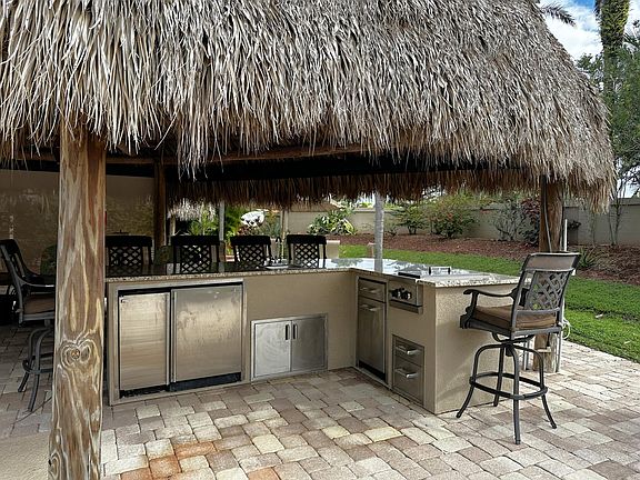 Well priced! Large lot! Motorcoach Resort St Lucie West! One of the largest lots in Phase One with no RV lot opposing view! Easy back in access! Newer refreshed LARGE Tiki with new kitchen, granite and appliances including water heater. This large lot has a nice balance of concrete and pavers in all the entertaining areas! Nicely landscaped with thoughts for golf cart area parking and uncovered entertainment space! Electric screens help keep the elements out. Includes furnishings and storage units. Plenty of room for your 45' rig, vehicles and golf cart. Green space for pets. Currently in the rental program. Close to the main entrance, clubhouse and pool. ''Class A'' Paradise!