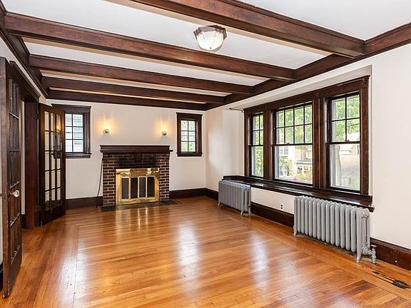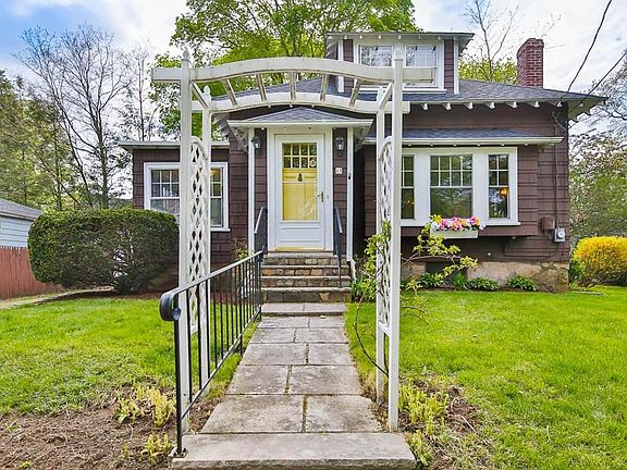 This beautiful 4 bedroom bungalow in desirable Oakdale neighborhood is walking distance to grade, middle, high schools and commuter rail. Less than 5 minutes to128. The home has original fruitwood doors, trim and built-in china cabinets. The antique hardwood floors were recently restored to their natural luster. The living room has exposed beam work, French glass doors, original sash windows, hardware, lighting and a masonry fireplace. The window seat in the living room is perfect for gatherings or quiet time. Upstairs are 2 private bedrooms and attic space which can be used for future rooms if necessary. There is plenty of natural light in the bedrooms and a sunroom study. Updated kitchen, bath, chimney and roof. 1 car detached garage and driveway. Situated on a quiet dead-end street.