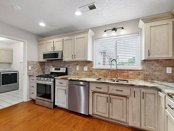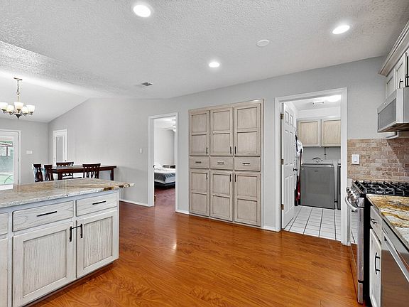 Beautifully updated porchPrivate backyardXeriscaped yardLaminate wood flooringMature treesLush landscapingVaulted ceilings