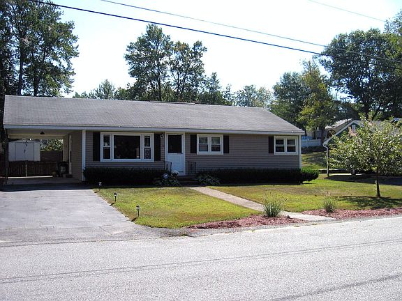Ranch home with carport and finished rec-room in half of basement area. Pet-friendly fully enclosed back yard with new vinyl fence (8/2015). Exterior storage shed. Excellent southern exposure (keeps house warm in winter plus prime candidate for solar energy). Sunny deck is accessed through sliding glass doors. Hardwood floors in living room and bedrooms (bedrooms currently carpeted). Covered carport parking for two cars plus additional room in driveway (can park two more cars in drive without blocking access to/from carport). City water/sewer/trash disposal.