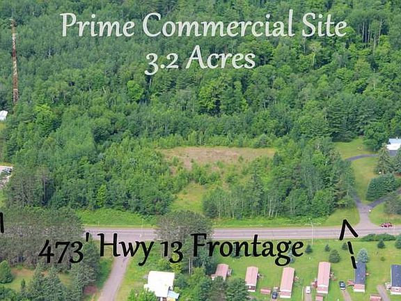 DYNAMIC COMMERCIAL LOCATION!! This 3.2 acre site has 473 feet of prime Hwy 13 frontage just a short distance north of the Hwy 70 and Hwy 13 intersection in Fifield, WI. This property borders Wheel Way Car Dealership. The acreage has electric, municipal sewer and water and could also be used for several homesites. There is also potential income from extensive gravel deposits. Owner financing available.