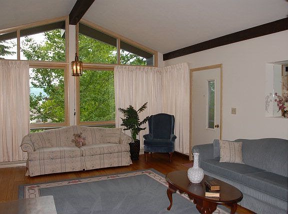 Ranch home in Stonewood Development on approx. 1 acre with a unique setting. Serene Valley Views from Front Deck, mature landscaping. Remodeled Kitchen with Zodiaq Quartz counters, Center Island, Pantry and work station. Dining room with random width HW floors has sliding doors to private deck. Living with HW, Cathedral Ceiling, Floor to ceiling windows. Mudroom off the 2 Car Garage with Laundry, storage + half bath. 3 BR and newly remodeled/enlarged bathroom has soaking tub and shower. Finished Lower with Family room, Full Bath, exercise