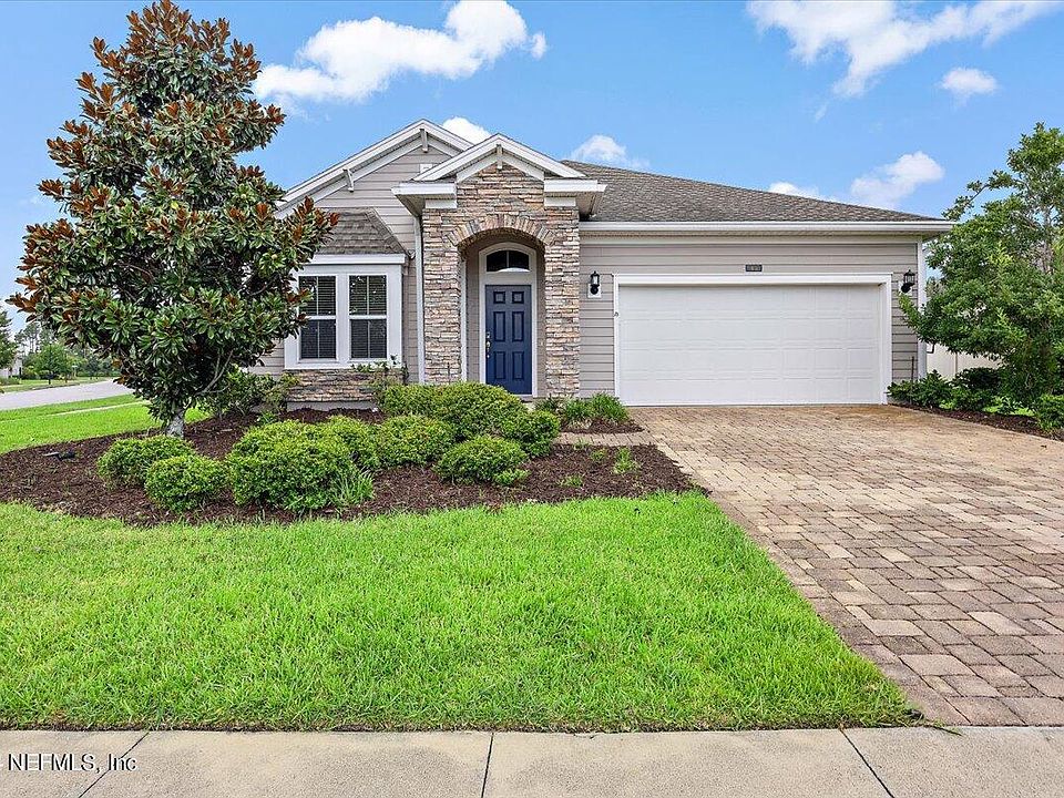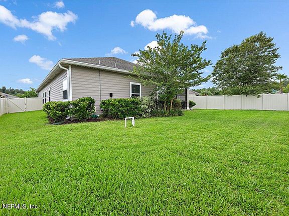 Discover luxury living, stylish design, and resort-style amenities in the beautiful community of Palencia! This 2,326 sq. ft., 4-bedroom, 2-bathroom home with a den/office offers everything you could want. Enjoy the dedicated office space, a paved driveway, a 2-car garage, a fully screened porch, and a fenced yard for privacy. Inside, you'll find abundant natural light, modern colors and finishes, vaulted ceilings, and spacious walk-in closets. The gourmet kitchen features a large island perfect for meal prep and casual dining, granite countertops, stainless steel appliances, and a separate pantry for extra storage. Plus, there's an exterior water pump to maintain the gorgeous landscaping without extra water costs. Located in an A-rated school district, this gated community boasts incredible resort-style amenities, including a private pool, jacuzzi, fitness center, tennis courts, parks, playgrounds, walking paths, a golf course, and more. Just a short commute to Publix, stunning