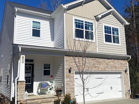 Welcome to your dream home! This beautifully maintained modern suburban gem with 2 car garage with ample storage. Clean lines, mix of siding and stonework, large windows 3 BR 2.5 BA home features the perfect blend of comfort, serenity and proximity to everything. Cozy front porch, neutral paint palette and gas fireplace is ideal for gathering. Open floorplan with generous primary suite upstairs. California Closets recently added have added smart storage and organized living. Slatwall garage storage, New Ceiling fans in BR, Newly added paver patio and architectural fencing allows the aesthetics and wildlife that is abundant in this peaceful culdesac. This home has a filter free top of the line HVAC system just installed (no maintenance) Includes a whole home Generac generator. New Washer/Dryer/Range. Say YES to this house! Seller planning to swap out refrigerator. Located .3 mi from American Tobacco Trail for cycling and walking!