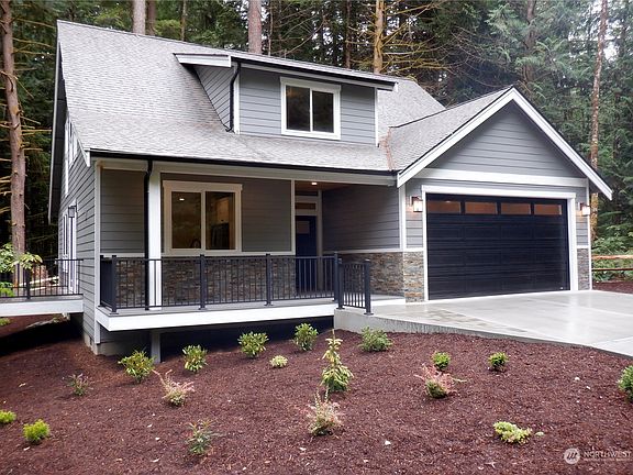 Amazing new home and property located in the lakeside and golf course community of Sudden Valley. The home has a covered front porch and side deck overlooking the green-belt. The property is a flat, double lot totaling 12,600 square feet. The home has a wonderful design with main level living (including the primary suite) - and 2 bedrooms, a full bath, and an office / den upstairs. The kitchen has a custom white cabinet package with quartz countertops & stainless steel appliances. The great room has a soaring ceiling, and the gas fireplace as the centerpiece. The primary bedroom is on the main, with walk-in closet and full bath with separate soaking tub and shower. Property has green-belt (park) on 2 sides; and across the street.