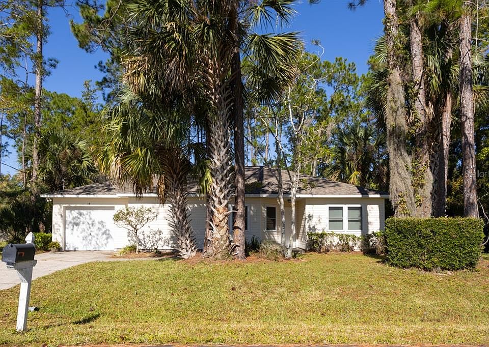 One or more photo(s) has been virtually staged. Charming 2 Bedroom, 2 Bath Home in Palm Coast, Florida. Welcome to this well-maintained home situated on an oversized lot in a quiet and private setting — just minutes from shopping, restaurants, and beautiful Flagler Beach! This home features a 2-year-old roof and offers a spacious eat-in kitchen with plenty of storage. Extra attic installation installed and a solar attic fan. Enjoy the convenience of an inside laundry area located off the garage. Relax or entertain in the large covered and screened lanai, overlooking the backyard and large storage shed, perfect for tools, hobbies, or extra storage. With its comfortable layout, peaceful surroundings, and prime location, this home offers the perfect blend of convenience and coastal living.