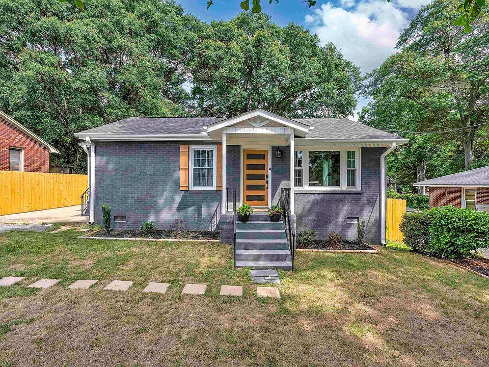 Just a stone's throw from Augusta Road! This beautifully renovated, modern home features over 1900 sf of stylish living space. Updated in 2024, everything here is brand new - windows, roof, HVAC, water heater, kitchen cabinets, countertops, appliances, flooring, bathrooms, and fireplaces - it is truly move-in ready! This thoughtfully designed home features four bedrooms and three full bathrooms, providing ultimate flexibility and convenience for family and guests. The contemporary kitchen, complete with a large island, flows seamlessly into the open living areas, making it perfect for entertaining. The owner is also leaving two 65 inch mounted TVs! Enjoy the stylish new bathrooms, chic barn doors, and the comfort of remote-controlled ceiling fans and LED fireplaces. The main primary suite is a true retreat, featuring a spacious layout, a stunning bathroom with a double vanity, a separate shower and tub, and a massive walk-in closet. Additional convenient features include a mudroom, pantry, and a laundry room with a hideaway ironing board. The large, flat backyard is fully enclosed with a new privacy fence and includes an oversized deck, ideal for gatherings, barbecues, or simply relaxing outdoors. Located on a quiet street, this home is super convenient to both Augusta Road and downtown Greenville. Don't miss out on this exceptional property -schedule your visit today!