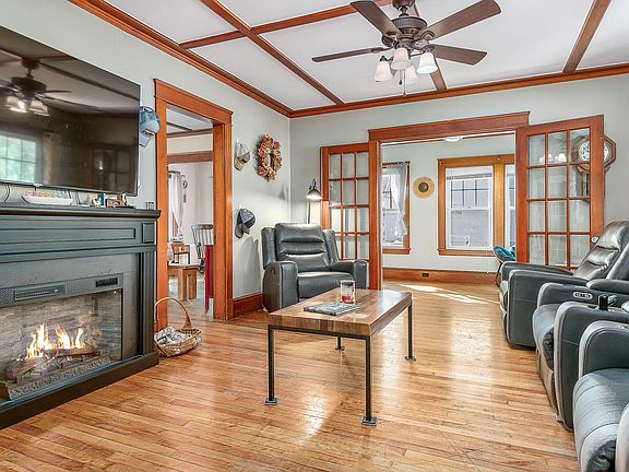Upon entering through the front door, you're greeted by a welcoming hallway that offers access upstairs, to the kitchen, or into the living room. Step into the living room and you'll immediately notice the original wood beams, hardwood floors, and French doors, giving the space a warm and timeless feel! Off the living room is a sunroom surrounded by windows, flooding the space with natural light — the perfect spot to relax or enjoy your morning coffee!