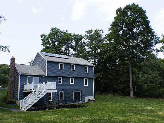 Beautiful 4 BR/2 BA colonial nestled in a friendly cul-de-sac neighborhood with sidewalks. Tranquil 2.13 acre lot bordered on 2 sides by conservation land. Newer vinyl shaker siding and composite deck. 50 year roof installed in 2011. Newer paved driveway and front walkway. Irrigation system. Amazing backyard--treehouse built in 2022, 40 ft. tree swing, 100 ft. zipline, berry bushes, firepit, and chicken coop!Many updates including granite countertops 2022, undermount kitchen sink 2022, all new vinyl tilt-in windows 2022, carpet and luxury vinyl tile 2022, well pump, tank, and pipes 2022, above-range microwave 2022, and refinished hardwood floors 2023. Kitchen cabinets are newly painted with a highly durable, hard-finish paint. All new outlets and light switches 2023. 4th bedroom added 2022. Room off master bedroom can easily be turned into master bathroom (water pipes are in the wall). Full unfinished walkout basement. Septic tank is rated for 5 bedrooms for future expansion!