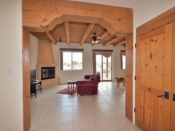 Designed to provide embracing views of the Sangres de Cristos, this delightful home gives the feel of country living and the serenity of wide open space! The open floorplan and extra-deep portal invite you to live life large, spilling into the great outdoors for the Southwestern Experience. This house remarkably has a 3-car garage (or 2-car with Workspace) and a fully fenced RV parking space with Hookups - ECIA approved! Good bedroom separation, large bonus room (Media Room, Den or Office with sliding door to the portal), tile floors, granite counters for kitchen and breakfast bar. New stucco in 2013, security system, walled and flagstoned front courtyard and wildlife-friendly fence created by a local artist in the backyard. Mature trees surround the home. Seller has had Pre-inspection to make this home move-in ready!