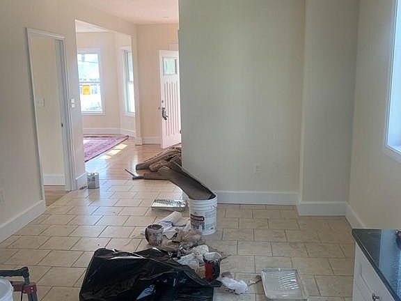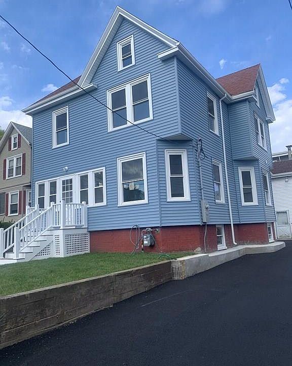 Unoccupied Large four square colonial with 4 bedrooms, 2 full baths, yard, lots of parking plus two story garage. All new heating, hot water, electric, plumbing, siding, windows, insulation, walls and cielings. Central air, granite, new appliances, second floor laundry, full basement and huge attic. Walk to bus. Not in downtown area. Front and back mudrooms, two 15 x 13 bedrooms, smallest is 10 x 12. Even driveway new.