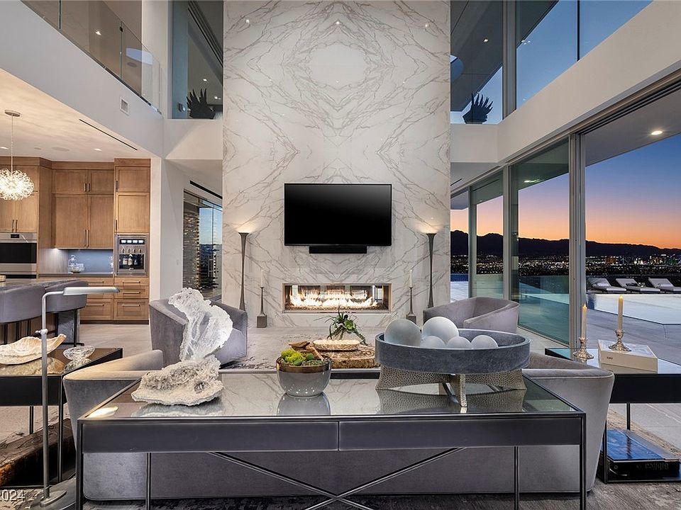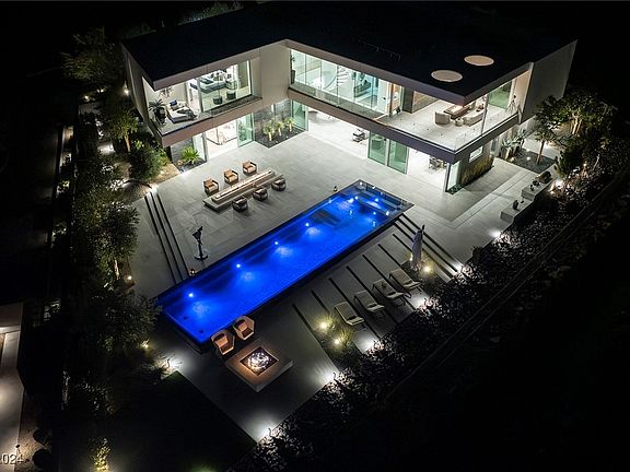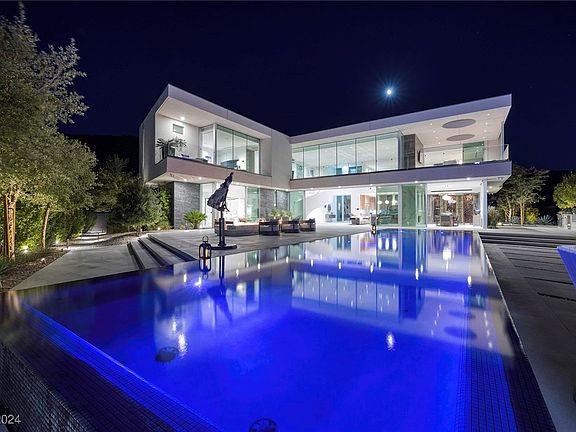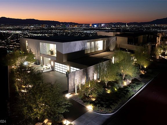 The Colony Estate in Guard Gated Ascaya. Modern Custom by Hoogland Architecture and built by Sand & Stone Builders with Sweeping Strip, Red Rock Mountain & City Views. 6670 SF | 5 Bed | 8 Bath | 4 Car |.48 Acres| Private Entrance w/ Water Feature| Wolf/Subzero Kitchen w/ Prep Kitchen & Built-In Wine Station | Game Room w/ Wet Bar & Strip View Balcony | 2 Indoor Neolith Surrounded Fireplaces | Strip View Dining Room w/ Glass Wine Cellar |Outdoor Built-In BBQ Kitchen| Zero-Edge Pool & Spa| 3 Outdoor Fire Lounges | Open Concept Design w/22FT Ceilings and Ample Sliding Doors | Custom Wall Treatments T/O | Strip-View Primary Retreat w/Open Air Outdoor Showe | Control 4 Home Automation| 2 Laundry Rooms |Owned Solar Panels |Epoxy Garage w/Storage| Furniture Optional/May be Purchased. Exclusive Guard-Gated Community | Mins to Strip, Airport, Shops, 5-Star Restaurants & Top-Rated Schools | Nevada is a State WITHOUT Individual & Corporate Income Taxes offering significant savings for Residents