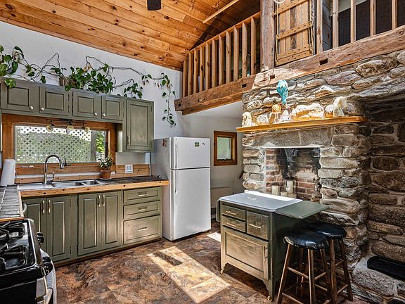 Located in the charming town of Montgomery, this 1880s cape-style home is quaint, quirky and full of character! With timeless charm, warm wood accents, and unique details throughout, it creates an inviting atmosphere from the moment you step inside. Previously used as a successful Airbnb, its proximity to Jay Peak Resort makes it a popular spot for visitors year-round. From the covered porch, enter into the bright and sunny kitchen, full of rustic charm from the cathedral ceilings and large stone fireplace. The open-concept main area includes a spacious living room, dining space, and den, and is cozy and relaxing with a wood ceiling and original wood flooring. The main level also includes a small bedroom, 3/4 bathroom, and a convenient laundry area. Upstairs, you'll find two additional bedrooms, both filled with natural light from their large front-facing windows, and a full bathroom with a classic clawfoot tub. On the opposite side of the home, the loft provides the perfect quaint and cozy space for relaxing, watching TV, or curling up with a good book. Outside, a tucked-away spot on the side of the house is the ideal place to relax and enjoy the outdoors, and the two-car detached garage is an added bonus, offering extra storage space. Located just minutes from Montgomery Center, you'll have easy access to local restaurants, and all the excitement of Jay Peak is only 15 minutes away, where you can enjoy skiing, snowboarding, hiking, and more!