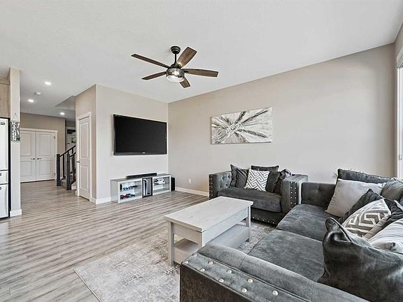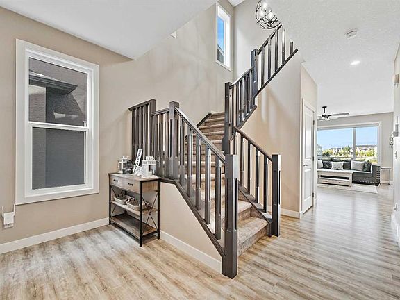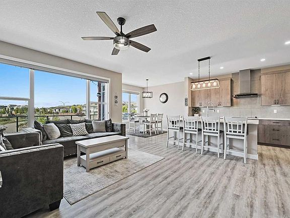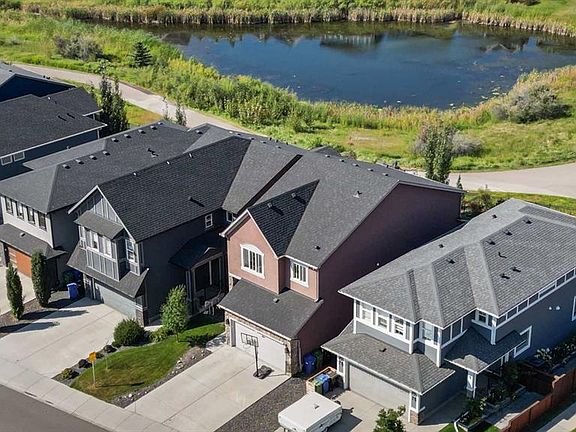 Located in Cranston’s exclusive Riverstone, this 2,167 sq ft two-storey, air conditioned, family home features 4 bedrooms and 3.5 bathrooms, thoughtfully laid out with all bedrooms on the upper level—alongside a spacious bonus room and a fully developed walkout basement. The open-concept main floor boasts 9' ceilings, oversized windows, and direct sightlines to the pond and walking paths behind. The gourmet kitchen is anchored by an 8-foot island, complete with quartz countertops, stainless steel appliances, and an extended walk through pantry with generous storage and unbeatable prep space. Upstairs, the spacious primary suite offers a 4 pc ensuite, with a deep soaker tub, glass shower, large vanity with makeup area, plus a generous walk-in closet. Recent interior upgrades include new lighting throughout—chandeliers, ceiling fans, and pot lights. The lower level, finished in July, provides over 730 sqft of additional living space, with a wet bar/kitchenette, large rec room, office nook, full 3pc bath with a walk-in shower, and two storage rooms. The insulated, attached double garage (over 385 sqft) completes the package. Your outdoor living options include an expansive upper deck (complete with natural gas hook up, an oversized ground level patio, and easily maintained landscaping with unique foliage in the backyard. You'll especially love the direct access to walking trails and the nearby Bow River right from your backyard. Easy access to Deerfoot and Stoney Trails. Convenient to Seton YMCA, excellent schools, all the shops and restaurant amenities. Do not miss your opportunity to bring your family to one of Calgary’s most desirable upscale communities!