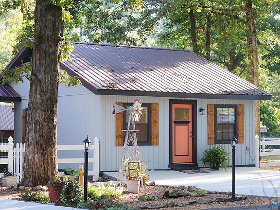 Detached recreational roomFenced lotCozy fireplaceDark cabinetrySunroom retreatTile backsplashHardwood floors