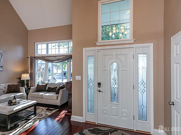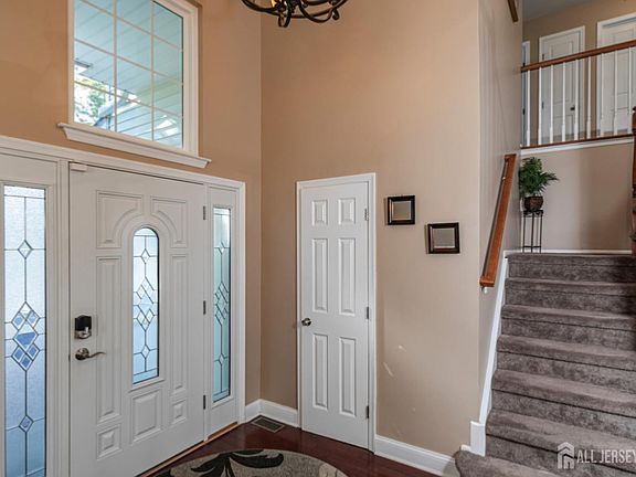 Nestled on a cul de sac this Beekman Manor home is perfect. The Flexible floor plan is comfortable thanks to a warm modern palette and hardwood floors. Replaced windows let in loads of light, especially in the two-story foyer and open entertaining rooms. The roomy, eat-in kitchen equipped with stainless steel appliances flows out to a new, no-maintainance deck, overlooking the park like yard, perfect for sipping morning coffee in the fresh air. A fireplace and recessed lighting let you customize the mood in the adjoining family room. You'll find the powder room and laundry conveniently tucked away near the garage. Head downstairs to the finished basement which offers plenty of storage and is perfect for play time or a workout that can be squeezed into a hectic schedule. Upstairs, double doors introduce the primary suite, offering a large closet, with a newly renovated bathroom and modern vessel sinks, backed by hexagonal tile, a big soaking tub, and a separate shower behind frosted glass. A neutrally tiled hall bath serves three more bedrooms. With a prime lot, ample indoor space and smart improvements, this home is the perfect spot for your next chapter. A short distance to the Greenbrook elementary school in a Blue Ribbon school district. Close to Rt 1, 27, Turnpike, Parkway and all major roads, great restaurants and shopping. Improvements to the home are: Newer W/D, microwave, refrigerator, Newly renovated primary bath, main bath re-grouted, replaced windows, custom shades through out,newer front door, deck, epoxy garage floor, newer HVAC,new hot water heater, newer roof, extra insulation between garage and second bath for increased efficiency. App controlled - Ring ready,security system, front door key pad,motion lights-driveway and patio door.