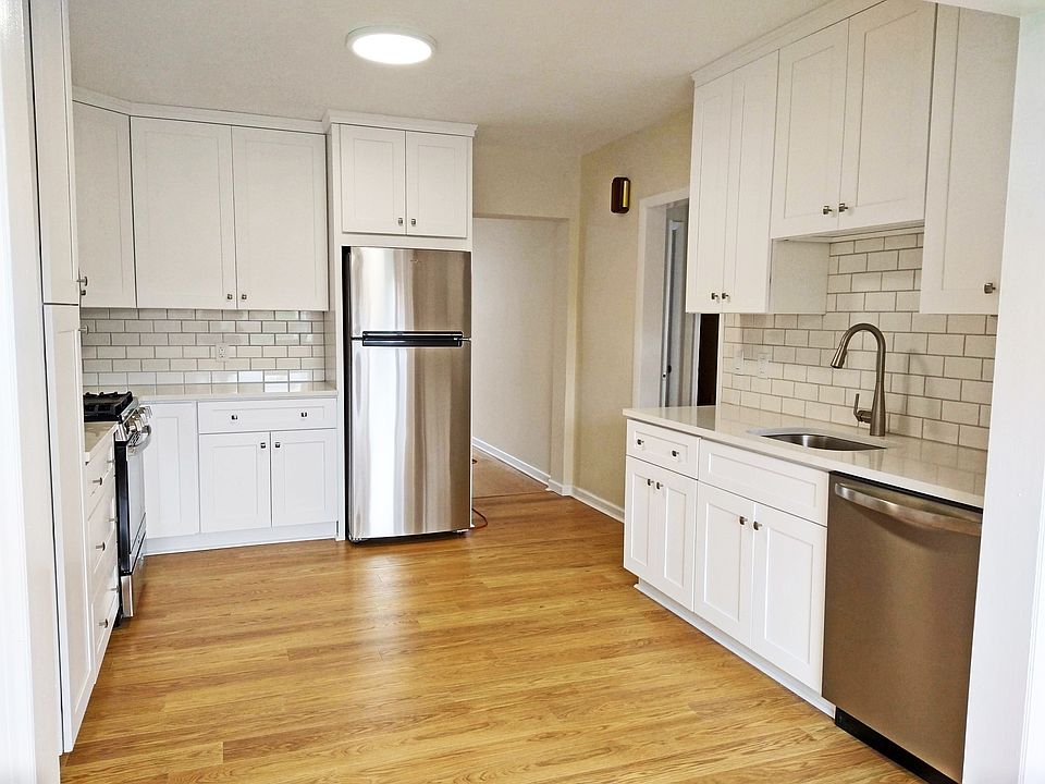 3 Bedroom + Office, 1 Bath, First Floor Unit. Brand New White Shaker Kitchen with New Stainless Steel Appliances including Dishwasher. Hardwood Floors throughout. Big Bright Living Room. Separate Dining Room with Big Picture Window View to the shared Backyard. Front Entry w/ vestibule, Back Entry with small Deck. Off Street Parking for 2 cars. Washer & Dryer in Basement plus designated Storage Room.