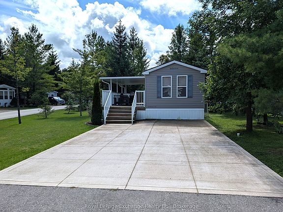Welcome to #1 Pond Road at beautiful Fisherman's Cove Tent & Trailer Park Resort. Located a few minutes off Highway #9, short drive from Kincardine and Walkerton and next to Black Horse Golf and Country Club. This 2016 3 bed 1 bath fully furnished Northlander Reflection model is move in ready. Upon entering you will come upon a 4-piece bath and primary bedroom with queen bed, which then leads to an open concept kitchen dining and living room. Past the living room are 2 bedrooms both housing bunk beds. Off the dining area patio doors open to a spacious 10x36 deck to house outdoor furniture and BBQ. This corner lot offers plenty of green space and also contains a firepit for nighttime relaxation and newer garden shed which provides plenty of storage space. Note the extra large double wide concrete driveway which will house 4 cars. Land lease is currently monthly but can be locked in for longer term. Don't miss your opportunity to live in an exclusive resort community.