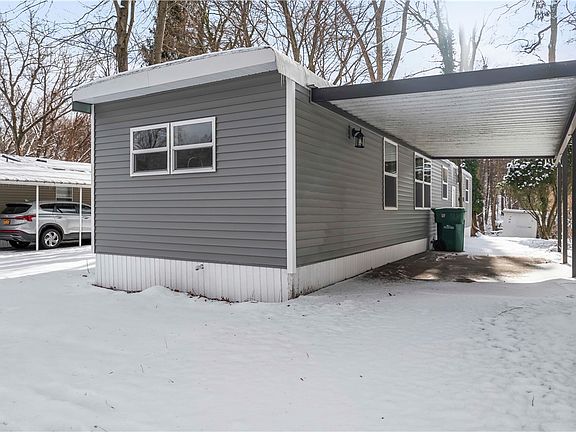 Discover a rare opportunity to own a beautifully remodeled manufactured home in one of Monroe County's most desirable communities, the Penfield Farms/Windward Community. Why rent when you can own in this sought-after area, offering access to the top-rated Penfield School District? Priced to sell, you can purchase this home without the frustration of delayed negotiations. This 2-bedroom, 1-bath home spans 732 sq. ft., efficiently designed for modern living with luxury vinyl plank flooring, elegant white shaker cabinetry, and all-new stainless-steel appliances. Nestled on a prime lot overlooking a tranquil wooded area, this home features a completely updated exterior with brand-new OSB sheathing, maintenance-free vinyl siding, brand new energy-efficient windows, and a freshly coated rubber roof. Enjoy peace of mind and low-maintenance living with utilities included in the lot rent—covering water, garbage pickup, snow removal, street maintenance, and taxes. The community enriches your lifestyle with amenities like a brand-new playground, picnic pavilion, dog park, and a shared fire pit area perfect for social gatherings and recreation. Relax on your enclosed patio or take advantage of the additional carport and storage shed. Ideal for first-time buyers, downsizers, or those seeking an affordable yet comfortable lifestyle in a community-oriented neighborhood, this home is move-in ready. Don’t miss out on this extraordinary opportunity. Schedule your showing today and embark on your journey to homeownership in Penfield!