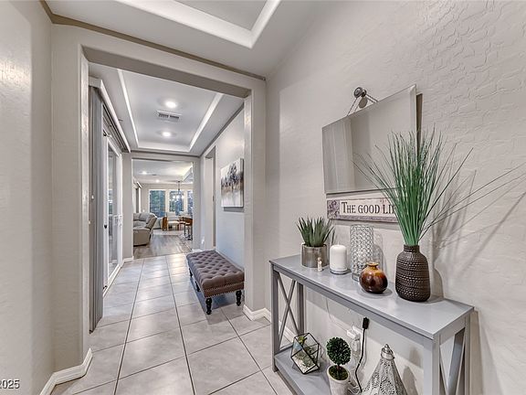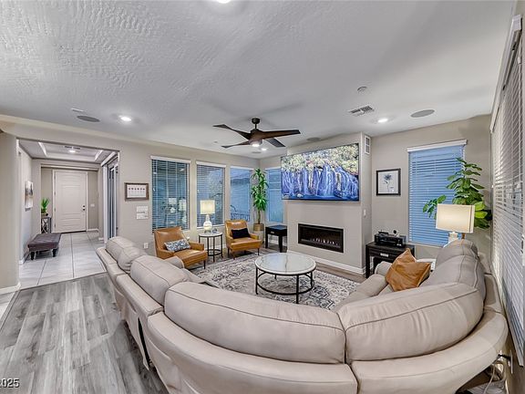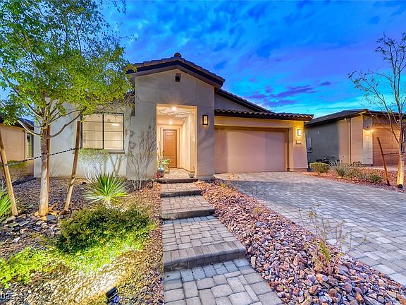 Beautiful single-story 2 bed, 2 bath home in the desirable 55 + Del Webb gated community at Lake Las Vegas! This open layout features hard surface flooring throughout, a spacious great room with fireplace and surround sound, and a kitchen with granite counters, stainless steel appliances, and ample storage. The private primary suite offers a walk-in closet and large walk-in shower, separate from the guest room. A laundry room with sink and shelving adds convenience. Outdoors, enjoy a covered patio, outdoor fireplace, pergola, and private courtyard—perfect for relaxing or entertaining.The 10,000 sf. clubhouse offers billiards, a fitness area, pickleball & tennis courts and many activities for residents. Nestled in Lake Las Vegas, voted Best Master Planned Community, residents enjoy a 320-acre lake with water sports, dining, and concerts. Discover the unmatched lifestyle of this picturesque community!
