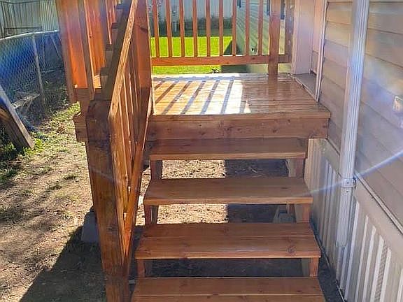 Updated with new appliances in 2019. Updated 6’X6’ front deck, and a 8’x6’ covered back deck. Also comes with an 8’x10’ Harmony shed, purchased new in 2020. 4’ chainlink fence added in 2020 roughly 76’Lx10’W with a 4’ gate.
