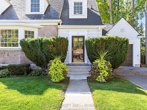 Welcome to 13 Sylvan Crescent, Lindsay, a stunning Cape Cod style home offering 4 bedrooms, 3 bathrooms, and timeless curb appeal in one of Lindsays most desirable neighbourhood. Step up to the inviting front entrance and be greeted by gorgeous hardwood floors, crown moulding, rounded ceilings, a built-in fireplace, and a bright bay window that floods the living space with natural light. The main level also features a formal dining room, a spacious kitchen, and an exceptional bonus area perfect for a sitting room, library, or music space with serene views of the backyard. The main floor primary suite is complete with a walk-in closet featuring built-in shelving, cozy corner fireplace and a private ensuite. Upper level has 3 generous size bedrooms & a 3pc bath. Additional unspoiled attic space with plenty of potential ready to be finished or storage area. The lower level offers two staircases, a large rec room with built-in bar, plenty of large windows, laundry, and generous storage. An attached breezeway conveniently connects the home from the kitchen to the garage. Outside, enjoy a beautifully landscaped backyard with interlocking stone patio, private treed setting, and peaceful garden space ideal for relaxing or entertaining. Updates include a metal roof, newer windows and doors, and well-maintained grounds. Nestled on a quiet crescent in a highly sought-after area of Lindsay, this property offers the perfect blend of charm, space, and location. Walking to shopping, hospital, community centre, library, schools, movies, theatrical theatre & resturants. Don't miss the chance to make this exceptional home yours!