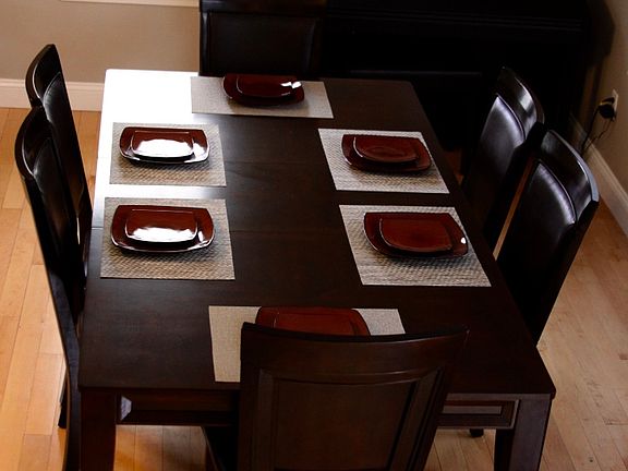 Must see three bedroom colonial on a level lot. 2 full and 1 half baths. Eat in Kitchen has upgraded cabinets and granite counter tops, gas cooking. Master Bedroom with attached double sink bathroom and walk - in closet. Wide staircase to carpeted upstairs. Updated wood floors throughout the first floor. Stained Glass front door. French doors open up to large deck. Basement is fully finished and features tiled flooring cover by carpet. Large Laundry room. Central Air.