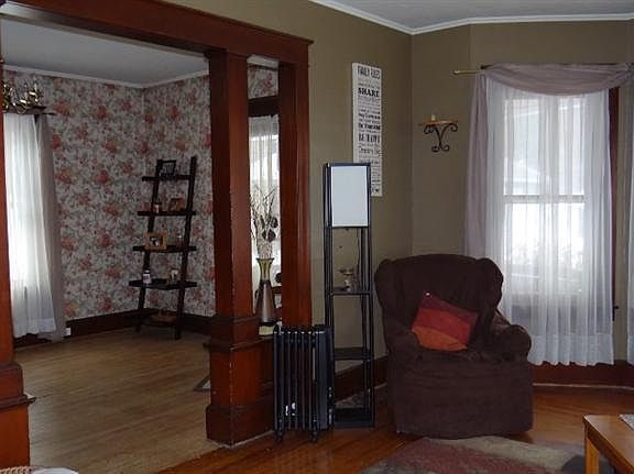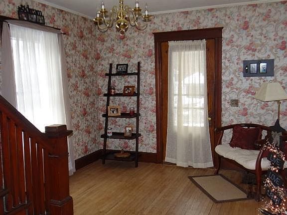 Character and Charm throughout! This 4 bedroom, 1 & 1/2 bath inviting home welcomes you with a large foyer with open stairway and incredible woodwork. Spacious living room with alcove windows, hardwood floors and pocket doors leading to dining room with hardwood floors and built in china cabinet. Easy working kitchen; 4 spacious bedrooms, newly updated bathrooms and a walk up attic. Located on quiet dead end street, this home is a very easy walk to downtown, shopping, and the YMCA.