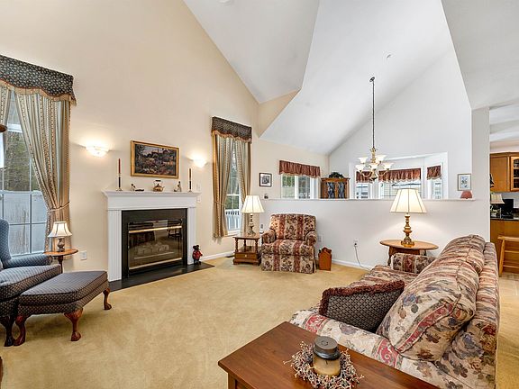 Welcome to Runnells Landing, a 55+ community of Contemporary Colonial townhouses in Hollis, NH.  This townhouse boasts pride of ownership throughout. Soaring cathedral ceilings are the first thing you notice in this home, cozy up by the gas fireplace, or enter through the 2-car attached garage into the kitchen which is great when coming home from the store! The Kitchen has a pantry, granite countertops, and beautiful maple cabinetry.  The dining room is bright and cheerful with hardwood floors that lead you to the back deck. The high ceilings continue into the first-floor master suite that is sure to wow you with its large bathroom which has a jetted tub, a standing shower, 1st floor laundry, and a walk-in closet. Continue up the stairs to a beautiful loft-style living room and sitting area.  You will also find the 2nd Bedroom suite which has a walk-in closet and a full bathroom.  Delayed showings until after the open house on Saturday 1/21/23 11am-1pm
